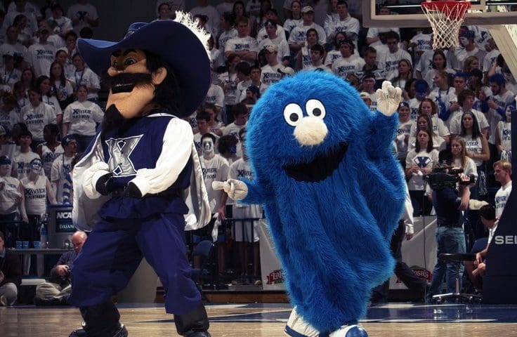 Once we were ready and with the camera rolling, I reached for a paper cutout of one of the university’s two mascots, the Blue Blob, that I just happened to have handy. While Xavier has The Musketeer as the main mascot—because being “All for One and One for All” means something around here—there’s a second mascot, the Blue Blob, that’s more whimsical.